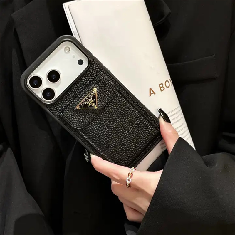 手ぶらでお出かけ、背面カードポケット付きのプラダ風iPhoneケース!傷がつきにくく、手に馴染むライチ紋レザーを採用。高級感漂う質感が持つ人の手元をエレガントに彩ります。中央には、一目でそれと分かるゴールドの「トライアングルロゴ」を配置。圧倒的な存在感を放ちます。背面にはフラップ付きのカードポケットを完備。ICカードやクレジットカードをスマートに持ち歩け、キャッシュレス時代のミニマルな外出に最適!