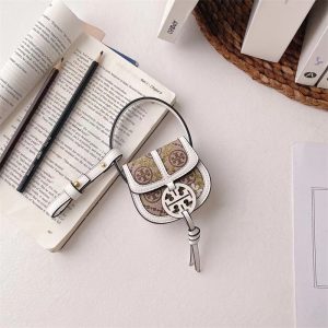 トリーバーチ風のAirPodsケース。トリーバーチのダブルTロゴをあしらい、レザー+キャンバス素材を使用し、お洒落で高級感が溢れます。ストラップ付きで、バックやベルトなどに掛けられます。ミニバッグのようなデザインはかわいくて、いつになっても時代遅れにならない!