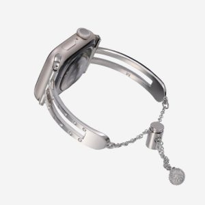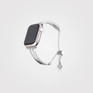 カルティエ風バングル式のアップルウォッチバンドです。バングルにラインストーンをあしらい、クラシックなカルティエ風仕様です。アクセサリーのようなデザインで、洗練された雰囲気と高級感を備え、Apple Watchをより一層美しく装飾してくれるアイテムです。アジャスターで簡単に長さ調節ができ、腕にフィットできます。プライベートからお仕事シーンまで、幅広く活躍してくれるシックな一品でおすすめです。