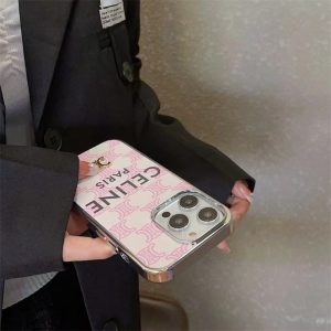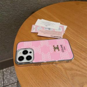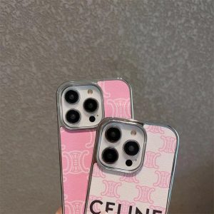 ピンク系のセリーヌ風iPhone16ケース。可愛いピンク系の色合いは大人女子にぴったり!フレーム部分はメッキ加工され、ケース背面にセリーヌのトリオンフ柄がプリントされ、また金具ロゴもあしらわれ、一目で見れば目を引きます。2色があり、親友とお揃いアイテムを使いましょう!