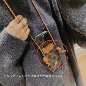 セリーヌ風のiPhone17/16ショルダーケース。スタイリッシュなトリオンフ柄は存在感を放ち、柄なしのデザインはシンプルさの極限を追い求める。背面にカードポケットつき、ショルダーストラップも配置、長さも調整可能、ハンズフリーでお使いいただけます。