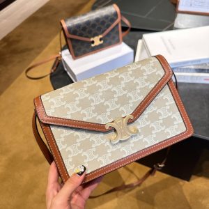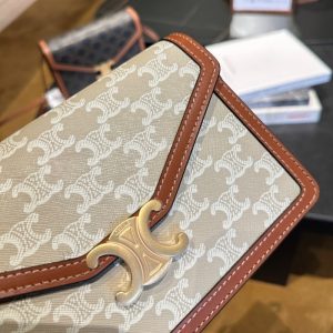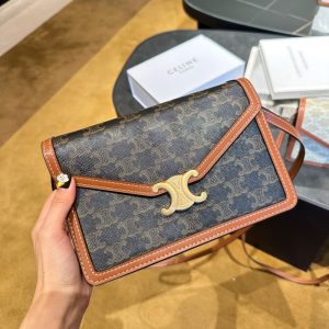 セリーヌのエンベロップトリオンフショルダーバッグです。トリオンフ金具がおしゃれでアクセントにもなれます!上品で洗練されたデザインはエレガントな雰囲気が溢れ、どんなコーデやシーンにも合わせやすい!普段使いにはちょうどいい大きさで、必要なものはしっかりと収納できます。