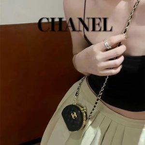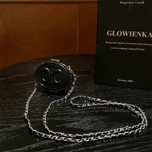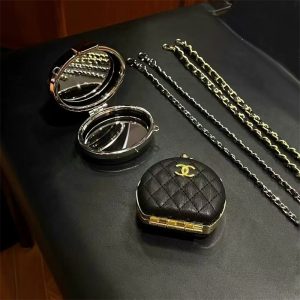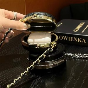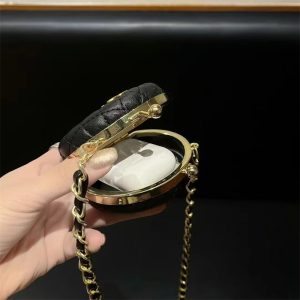 セリーヌ&シャネル風のミニ小物収納ケース。ショルダーストラップ付きでミニバッグのように肩掛け・斜めがけできます。airpodsだけでなく、小銭やコイン、リップスティックなどの小物も収納できます。裏にはミラーも付いており、ちょっとしたメイクチェックに役立ち、レディースの方々におすすめです!
