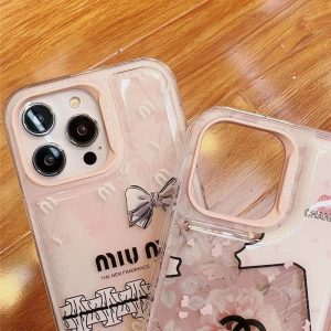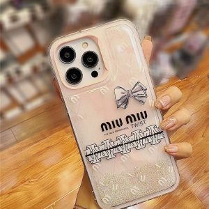 おしゃれで美しいシャネル風iPhone15ケース。ケースの中に小さなビーズが入り、ケースを動かすとビーズがキラキラと動いて流れる、ラグジュアリー感溢れるiPhoneケースです。可愛い4種類のデザインがあり、どちらもインスタ映えするトレンド感あるデザインです。