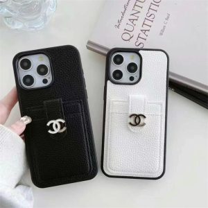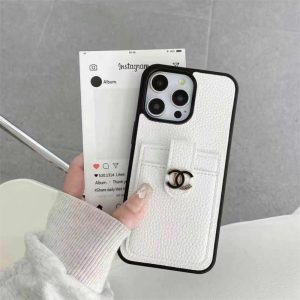 シャネル風のiPhone16ケースです。ケース本体はレザー調の素材を使用し、質感が高級感を感じさせます。 ブラックのフレームが端を囲んでおり、デバイスをしっかり保護します。特徴的なのは、ケースの背面にある小さなカードポケットと、そこに取り付けられたシャネルのメタルココマークで、シャネルらしいファッション感を演出しています。黒と白の2色があり、ペアで持つのもおすすめです!