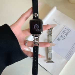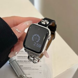 クロムハーツ風アップルウォッチバンド新作です。デニムベルトと金属製チェーンの組合せ、さらにクロムハーツのブランドアイコンが付いており、かっこうよく見えますし、ファッションアイテムとしてコーディネートの一輪にもなれます。