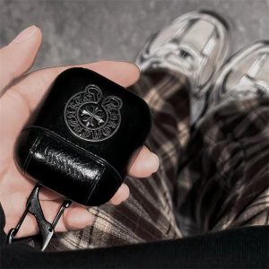 クロムハーツ風のiPhoneケースとairpodsケース。金属製のブランドロゴマークがインプリントされ、スタイリッシュでかっこいいデザインです。耐摩損で手触り心地がよいレザー調のケース。男性でも女性でも兼用で、ペアにもなれます。iPhoneケースとairpodsケースセットで使うこともオススメです!