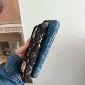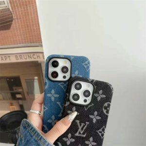 ルイヴィトン風デニム生地のiPhoneケースです。デニム生地にルイヴィトンのモノグラム柄がプリントされ、ちょっとカジュアルだけど上品さを失わないデザインに!さらにLVの銘板ロゴをあしらい、高見えで男女問わず幅広い年齢層の方にご愛用頂いています。