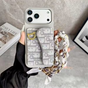 ディオールオブリーク柄のiPhone17/16ケース。スカーフを巻いた便利なチエーンストラップが付いており、さらに横方のカードポケットも付きなので、見た目のオシャレさはもちろんのこと、機能性もばっちりなのが人気な理由です。トレンドに敏感なガーリー女子なら、要チェックですよ。いつも持ち歩いて気分を上げたい♡毎日愛用できる携帯ケースです。