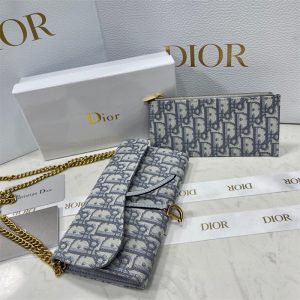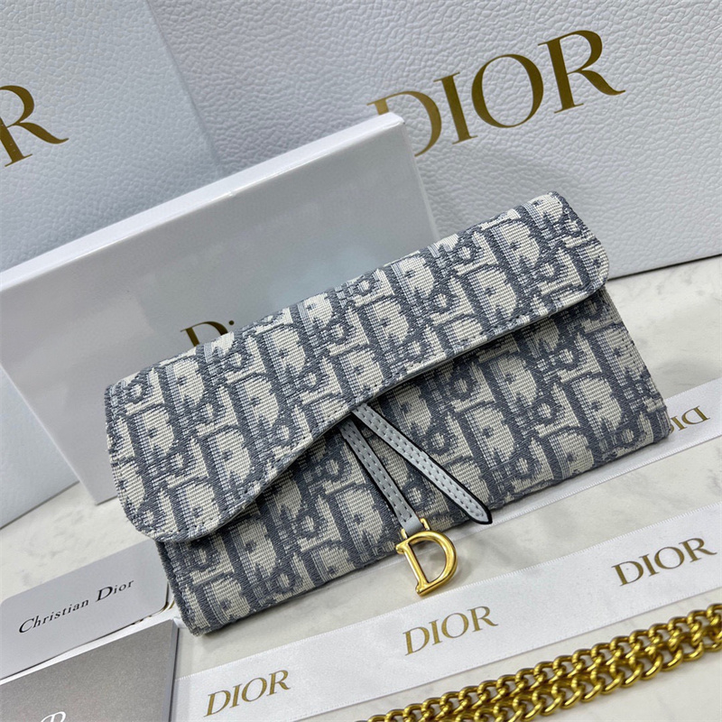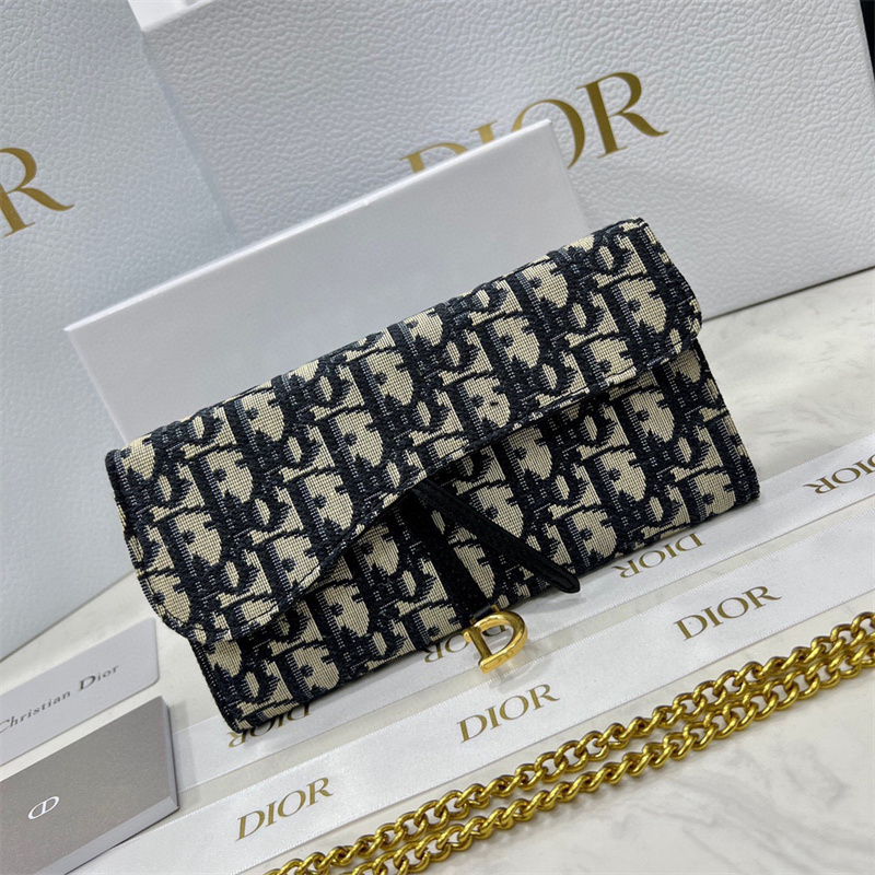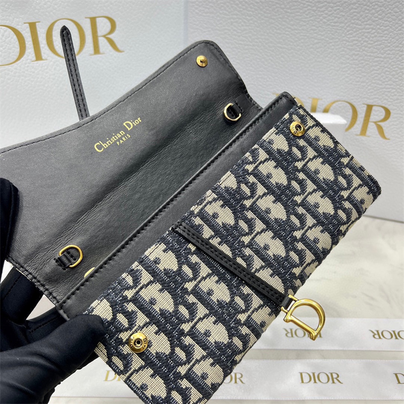 「ディオール オブリーク」ジャカードを使用した「サドル」ウォレットです。モダンですっきりとしたデザインのハイブリッドアイテム。アシンメトリーデザインのフラップに、あぶみを象ったアンテイークゴールドトーンメタルの”D”型モチーフ!!取り外し可能なストラップが付いているので、ハンドバッグとしてはもちろん、ショルダーバッグやクロスボディバッグとしてもお使いいただけます♪