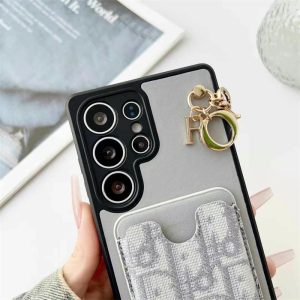 ディオール風galaxyケース最新作!もうすぐ出るgalaxy s25ultraにも対応できる!おしゃれな金具レターチャームが付きで、手の動きによって揺れ揺れてかわいい。背面に収納ポケットがあり、日常使いのカードが収納できて便利です。