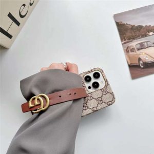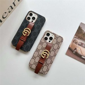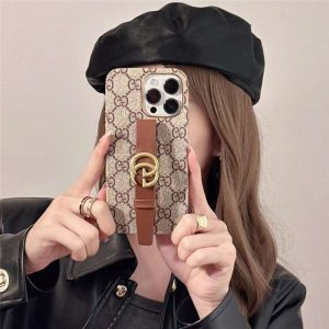 上品なGG柄と落ち着きある色合いは、大人っぽく洗練されたデザインに仕上げました。ゴールドGGマークが付いたベルトは、手を通せば落下防止にも役立ち、操作時の安定感もUPします。男女兼用、ビジネスシーンに使いやすいiPhone15ケースです。