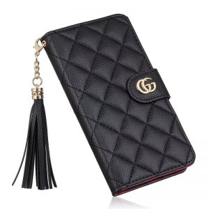 グッチ風手帳型iPhoneケースが新品入荷致しました!ラグジュアリーなキルティング設計、しかもゴールドGGロゴ付き、高級感がたっぷり溢れています。可愛いフリンジストラップ付き、取り外し可能があるので、バッグチャームとしても楽しめます。高品質なラムスキン革を採用、しっかりとした質感で持っているだけでワンランク上のお洒落が楽しめます。カードやお札収納できるポケット付き、ちょっと出かけする時に便利です。