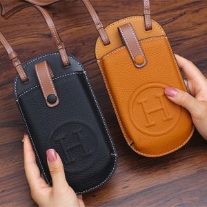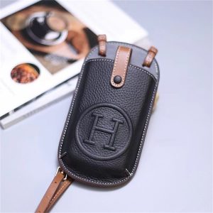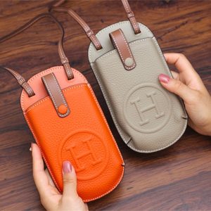 ファッショナブルなセンスの高いエルメス風スマホショルダーミニポーチです。本革のミニバッグにHの押し柄をあしらい、シンプルでありながらも高級感も溢れる。縦型のミニショルダーバッグはスマホの収納に使いやすい。背面にはカードスロットも配置されており、キャッシュレス派にとってこのバッグ一つで身軽にお出かけできます。