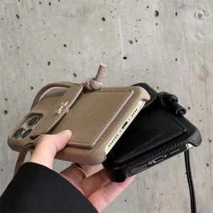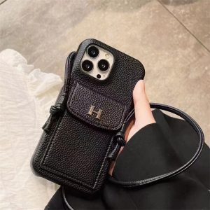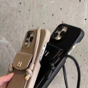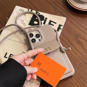 エルメスのiPhone17/16ショルダーケース。レザー調のケースは高級感があり、フォーマルなシーンで使いやすい。ショルダーストラップが付いておりますので、ハンズフリースタイルでおしゃれを満喫できる。また背面にはカードポケットも備えており日常生活にかなり便利で、機能性の高さも魅力です。
