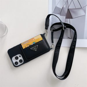 背面にカードポケット付きのプラダ風iPhone17/16ケース。カードを2枚収納でき、アクセスカードなどを毎日使っているビジネスシーンには最適なアイテム。ショルダーストラップも付いており、首掛け・斜めがけできてハンズフリーが実現!またレザー調のケースにPradaのトライアングルロゴをあしらい、便利さの上ファッショナブルな雰囲気も演出します。白と黒の2色があり、おそろいアイテムとしても使用可能!