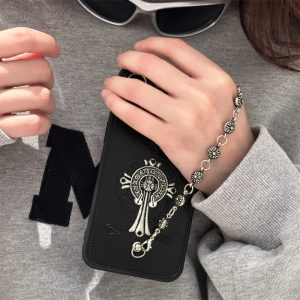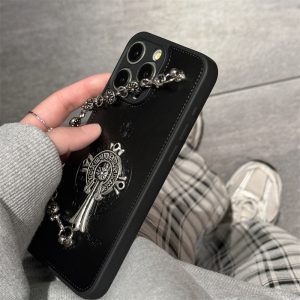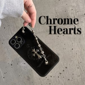 クロムハーツ風チェーンストラップ付きのiPhoneケースです。クロムハーツを代表するクロスモチーフをあしらい、この抜群の存在感はクロムハーツ好きからするとたまらないでしょう!チェーンストラップも付いており、落下防止にも役立ちます!