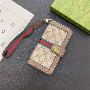 ルイヴィトン&グッチの手帳型iPhoneケース。ケース部分は上質なTPU素材を使用し、簡単に着用・取り外しできます。フラップ部分にはカード入れが配置されており、日常用のカードを便利に収納可能。ストラップ付きで、手首に掛けられて落下防止にも役立ち、操作時の安定感もUPし、落ち着いた大人の雰囲気をつくります。