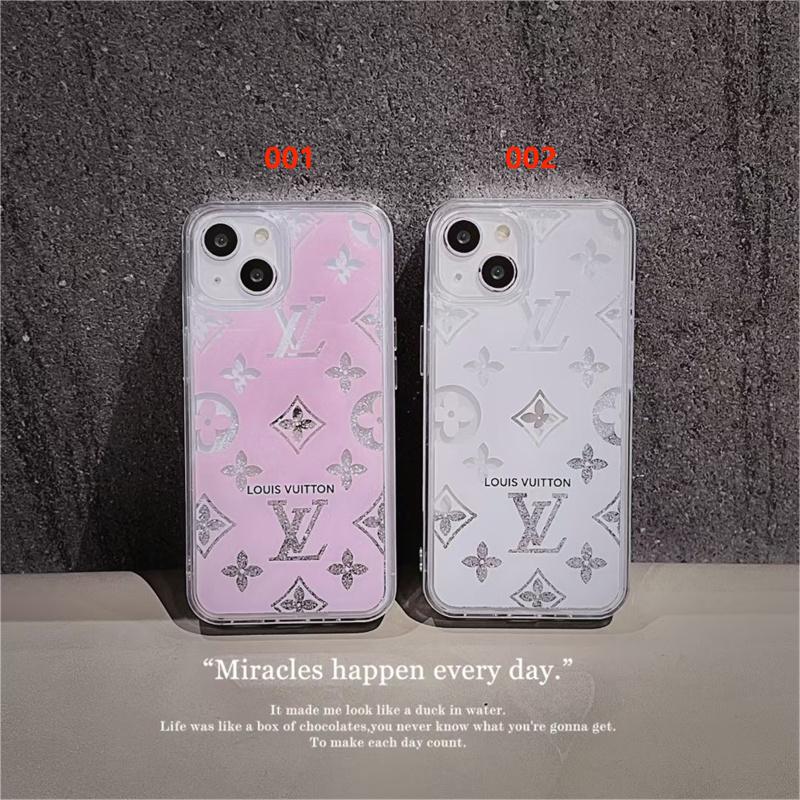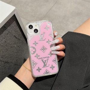 シンプルでおしゃれなルイヴィトン風iPhoneケース。クラシックなモノグラム柄で、二重層ケースの中にピカピカ光っているラメグリッターが入っている。動きにより流砂が流れて、見ているだけで癒やされます。個性を演出したい方におすすめのケースです。