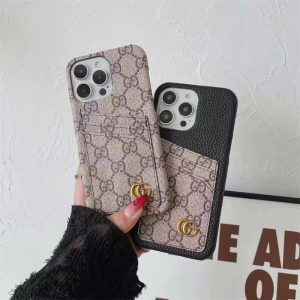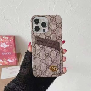 グッチのiphone16シリーズケースです。シンプルなケースにグッチのクラシックなダブルGパターンを採用し、ブランドの認知度を強調しています。背面にはカードを収納できる便利なポケットが付いており、カードを3枚入れて持ち運べます。底部にはゴールドメタルのダブルGロゴが施され、高級感を演出し、全体的なデザインはファッション性と機能性を兼ね備えており、品質とファッション性を追求する人に最適です。