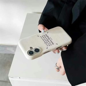 メゾンマルジェラ風のアイフォン17/16ケース。大人レディースの愛用ブランドで、背面にはアイコニックなカレンダータグがプリントされました。シンプルで軽量なレザーケースは持ちやすく、手元の負担にはなりません。ファッションセンス満載の3色まで展開で、どんなコーディネートにも合わせやすいです。