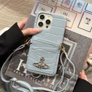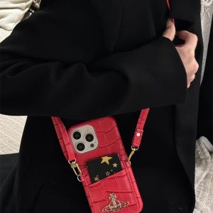 ヴィヴィアンウエストウッド風のショルダーiPhone16ケース。ショルダーベルト付きで肩掛け・斜めがけできてハンズフリーが実現できます!背面にカードポケットもあり、日常用のカードなどを収納可能でちょっとしたお出掛けに十分!クロコダイル柄のレザー調デザインはおしゃれで、ヴィヴィアンのブランドロゴと合わせてさらにファッショナブルな雰囲気を醸し出す!