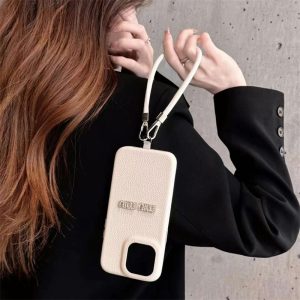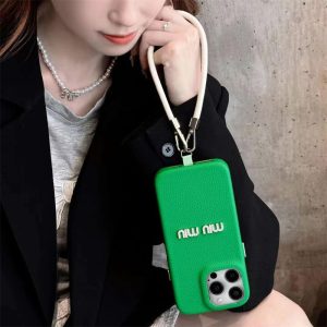 iphone16 ケース ミュウミュウ iphone16pro/16promax ケース ストラップ 付き アイフォン ケース ハイブランド iphone15/15pro ケース レザー ブランド スマホケース 可愛い シンプル
