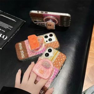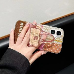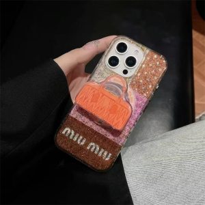 大人可愛いミュウミュウ風のiphone16ケース。バッグモチーフのマグネットホルダー付き、背面スタンドとしても使用可能。ケースに強力な磁力搭載で、magsafe充電にも対応できます。ラメグリッター入りでキラキラして手元を華やかに◎