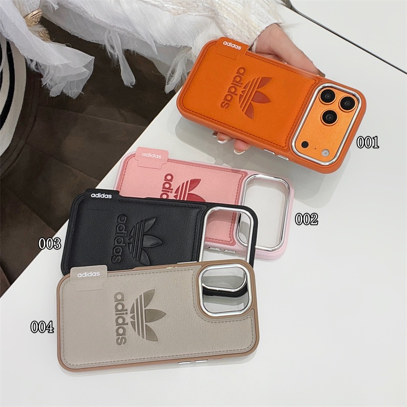 iphone17 ケース adidas iphone17pro/16pro ケース レザー ブランド iphone16/15/14 ケース ペア 大人 ブランド スマホケース カップル お 揃い ブランド iphone ケース 押し加工