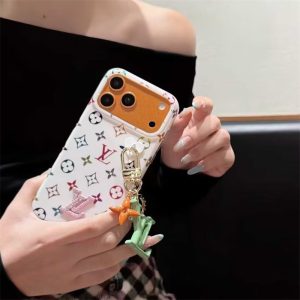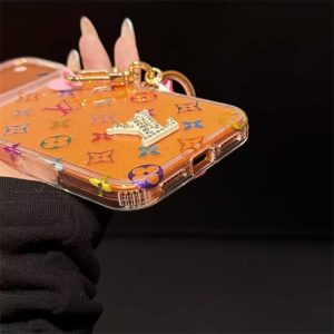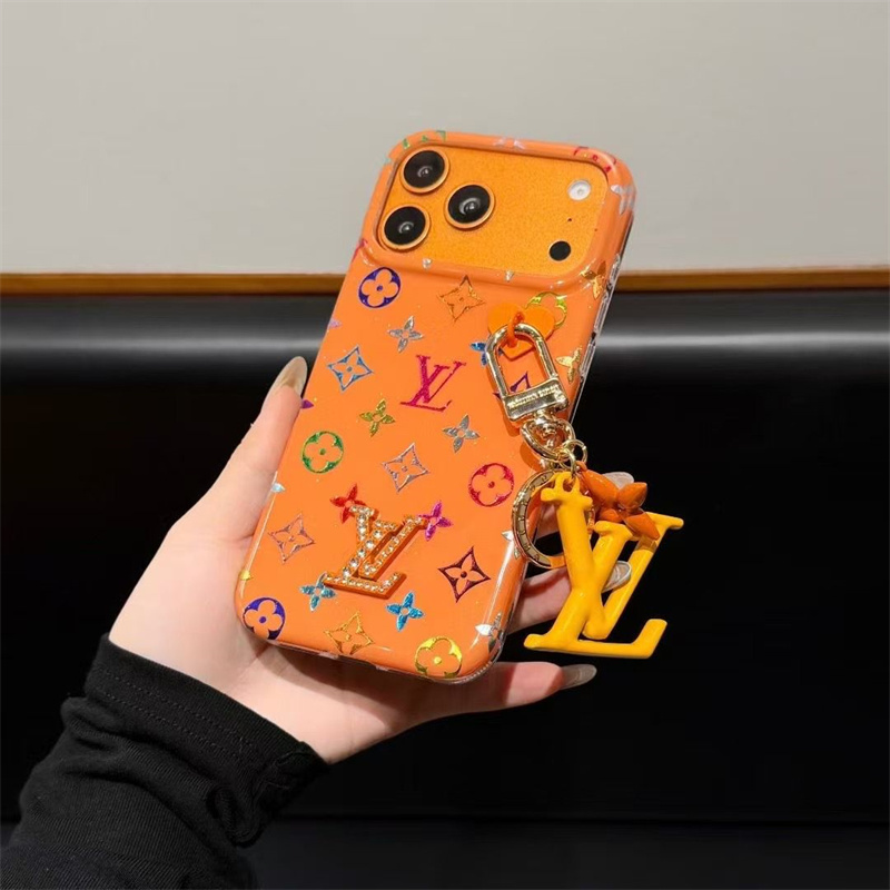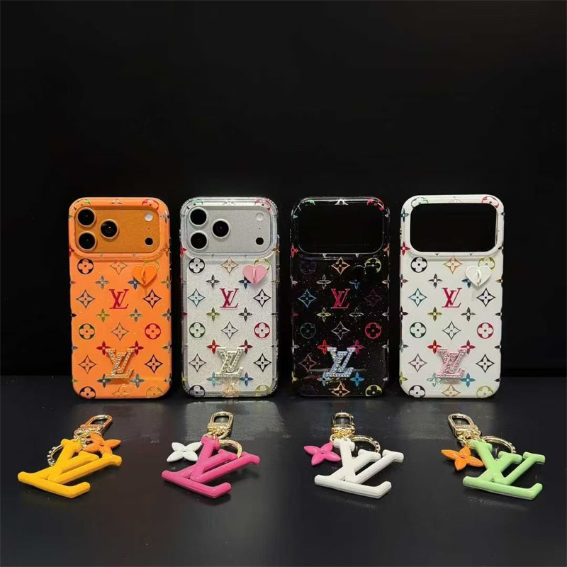 ルイ・ヴィトン(LV)のモノグラム柄をデザインしたiPhone17/16ケース。上質なハードケースにキラキラグリッター入り、さらにカラフルなLVロゴやモノグラム柄がプリントされており、明るくファッショナブルな印象です。またLVロゴのチャームが付属しており、豪華さを加えています。
