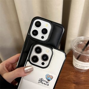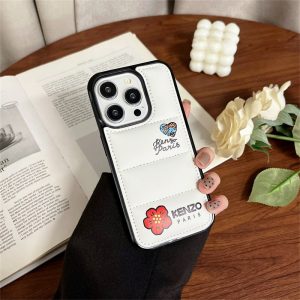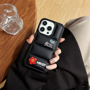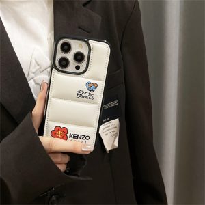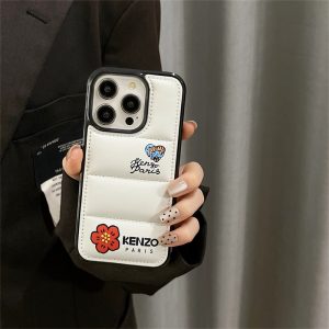 ケンゾーのiphone16/15ケース新作。ダウンジャケットデザインのケースにkenzo parisのブランドロゴと花柄がプリントされ、全体的なデザインはシンプルでありながら非常に認識しやすく、美しさと個性を兼ね備えています。黒と白の2色があり、ペアでお持つのもおすすめです。