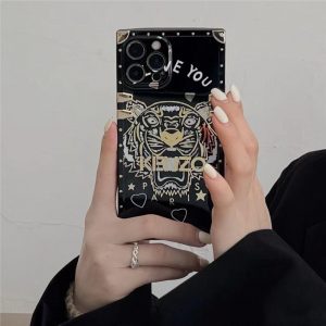 ケンゾー(Kenzo)アイトランク型のiPhoneケースです。メッキ加工を施したKENZO虎頭が高級感漂うオシャレ!スマホケースに存在感を放ちます。また、ユニセックスなデザインなので、男女問わずお使いいただけます。丈夫なTPU素材のケースなので、落下時の衝撃を和らげiPhoneを傷から守ります。
