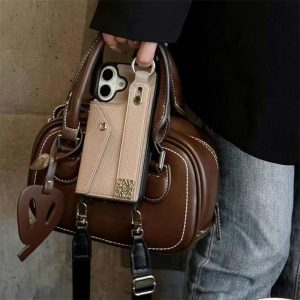 高品質なライチ紋レザーを採用、ショルダーストラップ付きのロエベ風iPhone16ケース。ハンドストラップ付き、落下防止に役立ちますし、右下にロエベの金具ロゴをあしらい、シンプルながらも高級感のあるデザインに仕上がり!背面にカードポケットも配置されており、手ぶらでちょっとしたお出掛けにこれ一つで十分!魅力的な4色をご用意しており、お友達とお揃い、色違い、プレゼントにもオススメです。