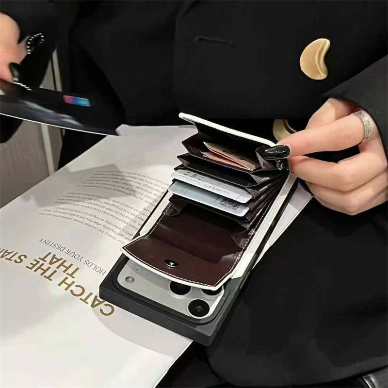 上品でスタイリッシュなスクエア型のロエベiPhone17ケース。アコーディオン式カードポケットを搭載し、カードや小銭を収納可能!ホワイトとブラックの2色展開で、男性女性兼用、お揃いアイテムとしても最適!