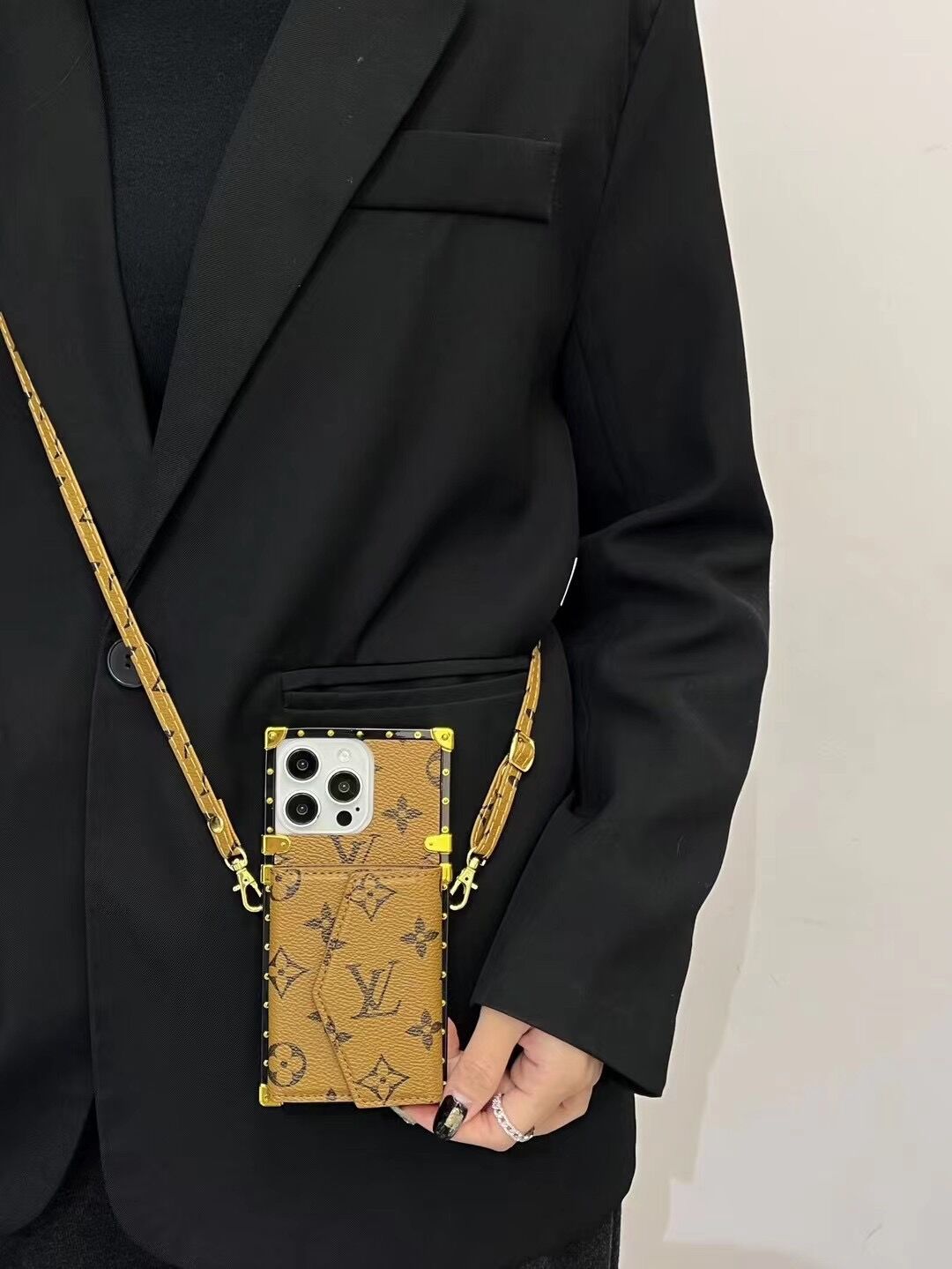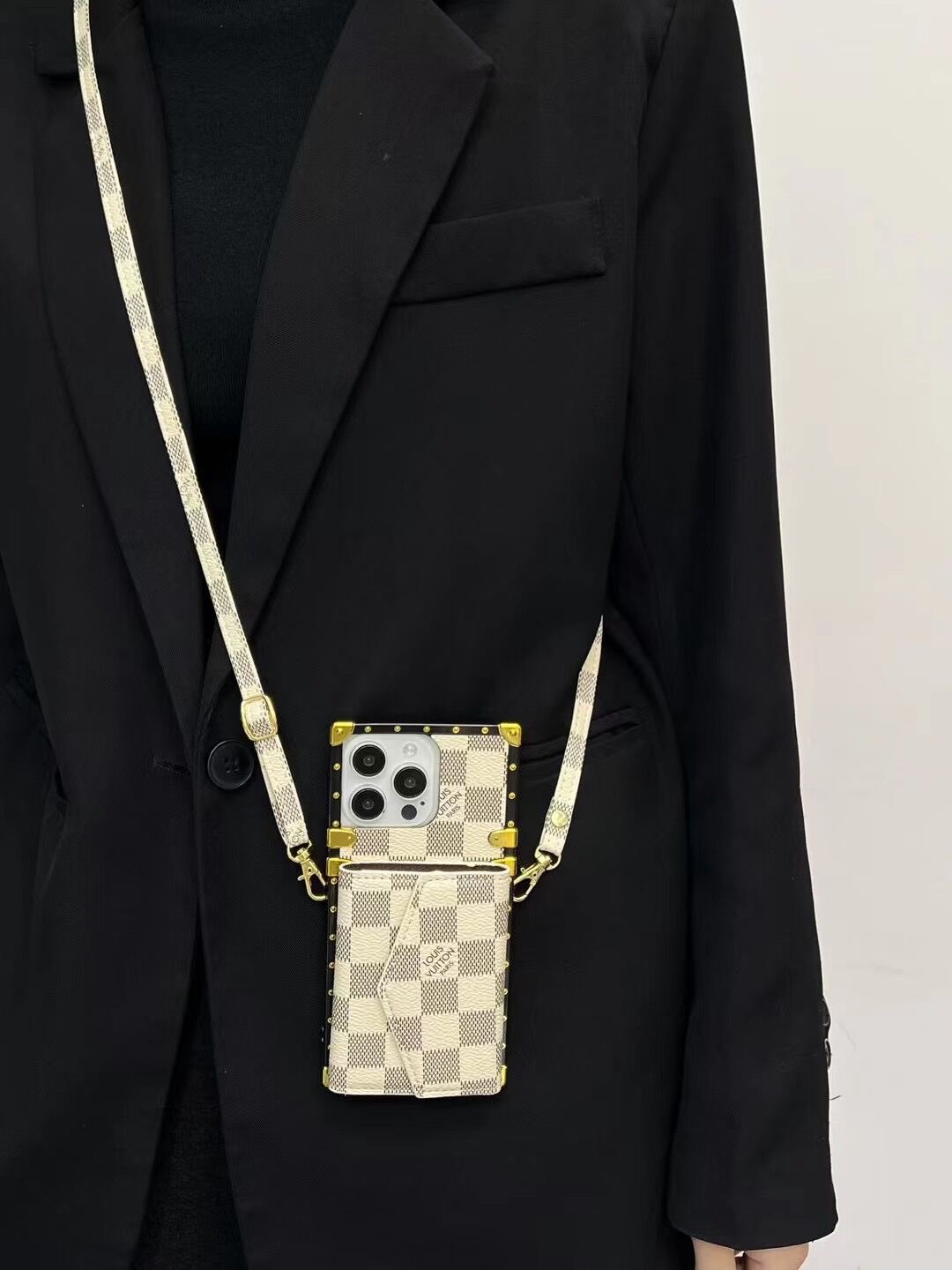 おしゃれでエレガントなルイヴィトン風スマホケース。背面にはカード収納ポケットを搭載しており、カードや小銭をきちんと収納でき、日常生活に便利な一品。取り外し可能なショルダーストラップもあり、両手を解放することができ、機能性も高く、幅広いシーンで活躍しそうなケースです。