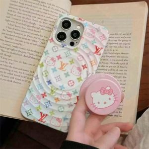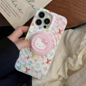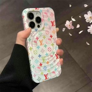 ルイヴィトン&キティちゃんコラボのiphone16ケース!ウェーブデザインが特徴で、カラフルなモノグラム柄とキティちゃんパターンがあしらい、可愛くて大人レディースに大人気!マグセーフ対応で、キティちゃん柄のマグネットグリップも付いております!