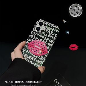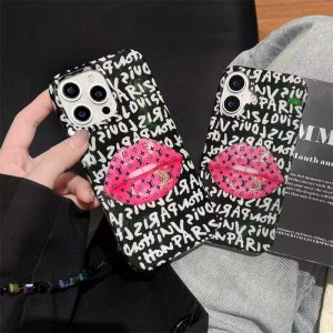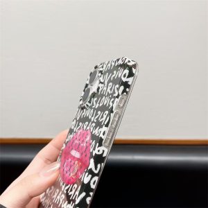 大人レディースにおすすめ!個性的なルイヴィトン風iPhone16ケースです。不規則な白黒なアルファベットパターンがプリントされ、大きめのピンク柄と合わせて、ファッション性の高く、お洒落を追い求める女性の方々にぴったり!ビーズストラップ付き、手持ちでき落下防止に役立つし、デコレーションパーツとしても◎