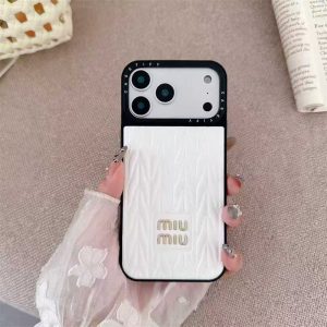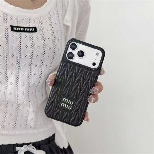 エンボス加工デザインの可愛らしいミュウミュウ風iPhone17ケース。上質なレザー素材を使用するので、長くご愛用いただけます。キュートなデザインは、女性へのプレゼントとしても喜ばれること間違いなしのアイテム♪お色はブラック、ピンク、ホワイト3色展開となります。
