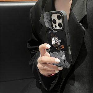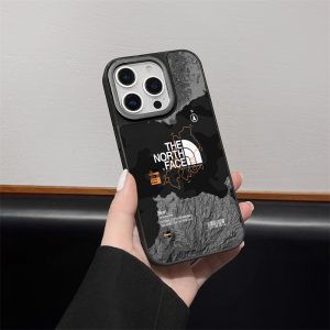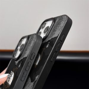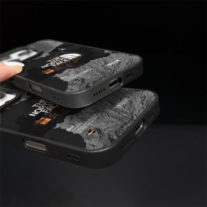 世界的に有名なアウトドアブランド・ノースフェイス風のiPhone16ケース。ベーシックなブラックカラーiPhoneケースにノースフェイスのブランドロゴがプリントされ、かっこうよくおしゃれなデザインに仕上がり、年齢を問わず男性の方々、特に男子高校生に愛用されています。