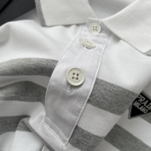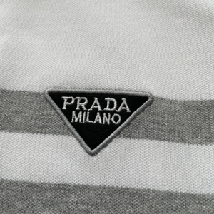 Pradaストライプポロシャツ新作登場!シンプルなストライプデザインにプラダのトライアングルロゴでファッショナブルなセンスが漂う!高級なコットン素材を採用しており、毛玉になりにくいし、縮まないのはポイント。年齢・性別・フィギュアを問わず、誰でもおしゃれに着こなせる完璧な一品でおすすめです!