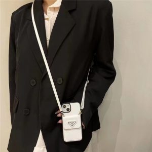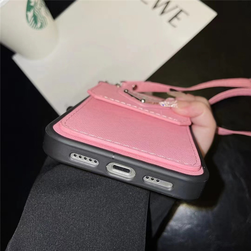プラダ風iPhoneショルダーケースです。カードやお札を収納できるポケットも備えており、お出掛け便利に対応できる人気の高い商品です。見た目はシンプルで高級感あり、大人らしくエレガンスを十分に展示しています。通勤やショッピングなど日常生活にも使えます。