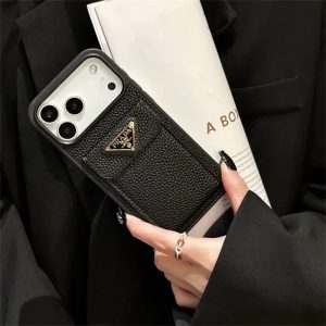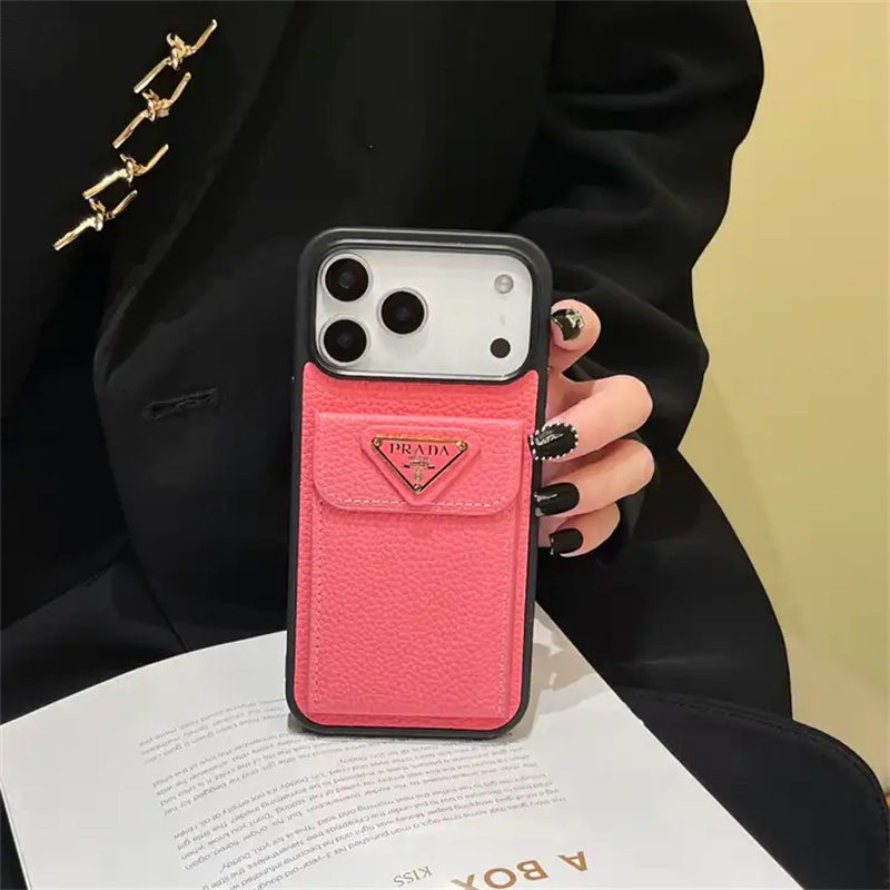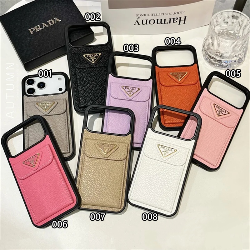 プラダ iphone17/17pro ケース カード収納 付き iphone17promax ケース レザー ブランド プラダ トライアングル ロゴ スマホケース ライチ紋 キャッシュ レス iphone16/15/14 ケース