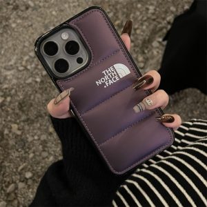 ノースフェイス風ハイブランドiPhoneケース。ぷくぷくとしたダウンジャケットデザインにthe north faceのブランドロゴがプリントされ、日常コーデのアクセントになれます。6色があり、ペアルックアイテムとしてもお使いいただけます♪
