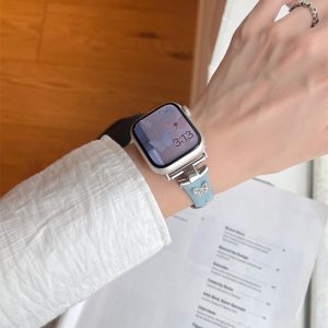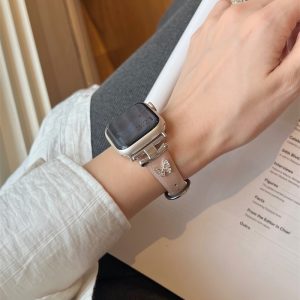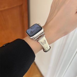 ヴィヴィアンウエストウッド(vivienne westwood)風apple watchバンドです。本革製のベルトにヴィヴィアンのブランドロゴと蝶々モチーフアクセサリーをあしらい、ラインストーンで飾られてキラキラして目を引きます。プライベートからお仕事シーンまで、幅広く活躍してくれるシックなデザインでファッションを追い求めるレディースに大人気!