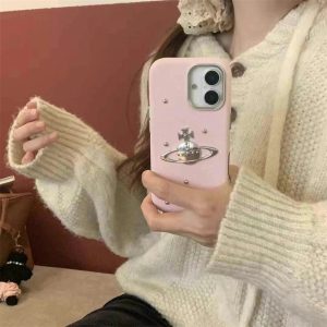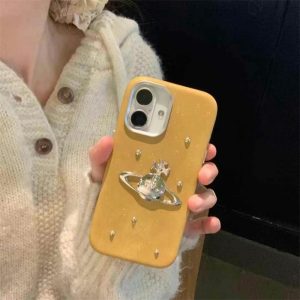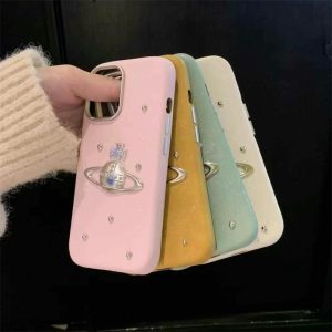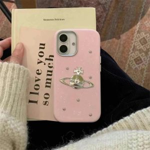 ヴィヴィアン・ウエストウッドの象徴的な「サターンロゴ」が飾られたiPhone17/16レザーケース。ケースにキラキラグリッター入りで、光の角度により少し煌めいて手元を華やかにできます。全4色があり、ヴィヴィアン・ウエストウッドの独特なファッション感覚を表現しており、iPhoneを保護するだけでなく、ファッションアクセサリーとしても楽しめる!