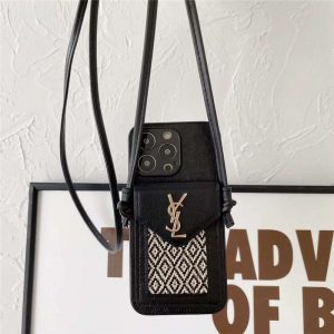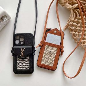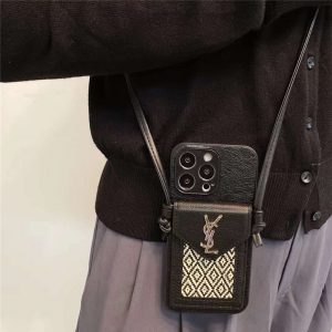 iphone15pro ショルダーケース サンローラン iphone14plus/14ケース カード収納 背面