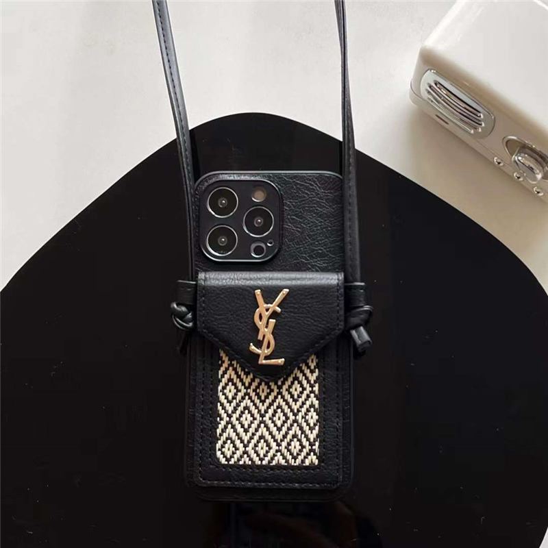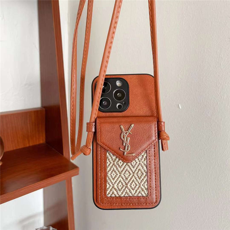 iphone15pro ショルダーケース サンローラン iphone14plus/14ケース カード収納 背面